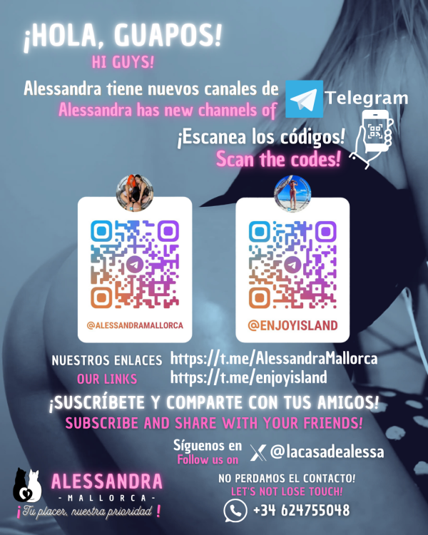 Hola, cariño, Soy LESLY, escort venezolana de 24 años, linda, amorosa y apasionada, extrovertida, fiestera y muy sensual. Es mi primera vez en Mallorca y estoy feliz de recibirte en el centro de Palma, en Calle Marian Aguiló, en un piso privado, cómodo y discreto, ideal para momentos inolvidables. Soy coqueta, cariñosa y juguetona… me encanta divertirme, mimar y entregarme para que cada encuentro sea único. Estoy disponible 24/7, sin prisas y con toda mi atención solo para ti. ¿Quieres algo aún más especial? También hago salidas a domicilio o hotel, siempre con la misma energía encantadora que me define. Escríbeme por WhatsApp para más información y reservas. Y si quieres ver más de mí, sígueme en Telegram: https://t.me/AlessandraMallorca _____________ Hi baby, I’m LESLY, a 24-year-old Venezuelan escort — beautiful, loving, passionate, outgoing, party girl and very sensual. It’s my very first time in Mallorca, and I’ll be waiting for you in central Palma, on Calle Marian Aguiló, in a private, cozy and discreet apartment — the perfect place for unforgettable moments. I’m flirty, affectionate, and playful… I love having fun, pampering, and giving myself fully so every encounter feels unique. I’m available 24/7, unhurried and with all my focus just for you. Want something even more exciting? I also do outcalls to your place or hotel, always with the same vibrant energy that defines me. Message me on WhatsApp for more info and bookings. Follow me on Telegram to see more: https://t.me/AlessandraMallorca